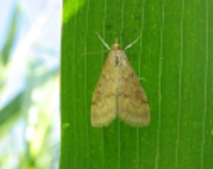 La larva si nutre attivamente di foglie che vengono danneggiate dall'attività trofica.