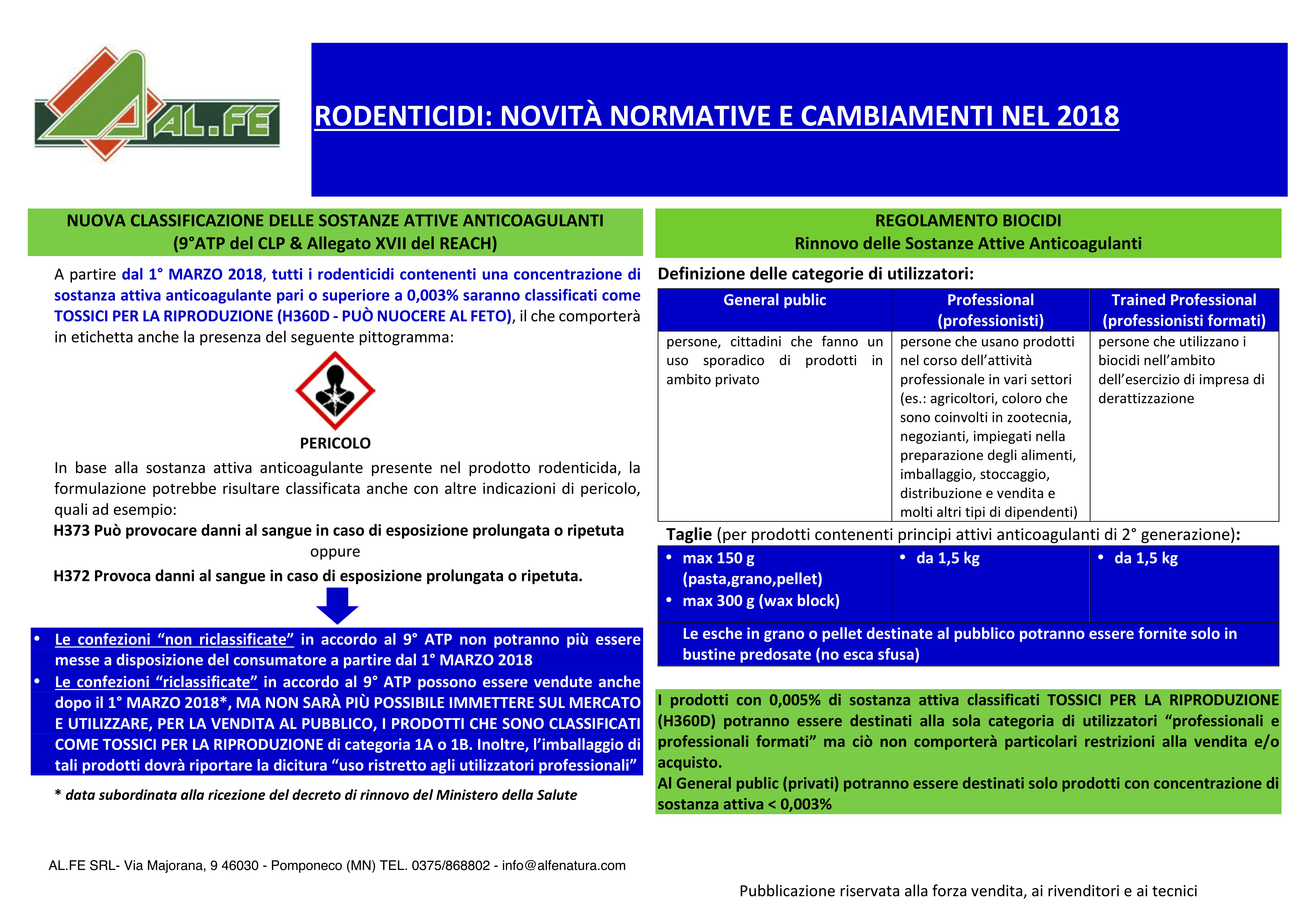 I regolamenti di rinnovo dei topicidi definiscono le taglie massime e minime per ciascuna categoria di utilizzatori, nonché le diverse formulazioni impiegabili, come nel seguente schema: