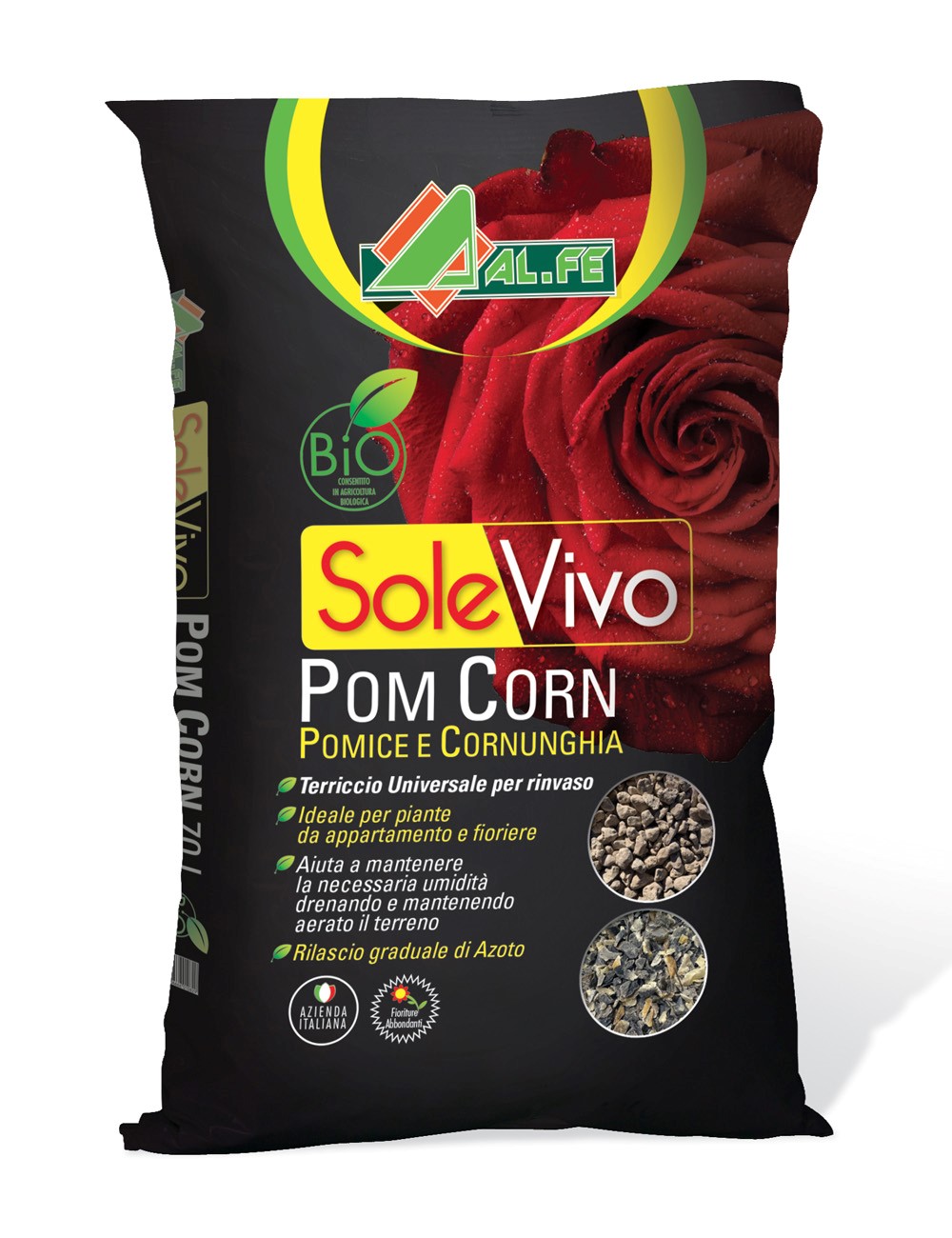 SOLEVIVO POM CORN è il terriccio ideale per ogni genere di rinvaso di piante da appartamento, da balcone e fioriere in quanto incontra le esigenze di tutte le specie vegetali tipicamente coltivate in vaso.