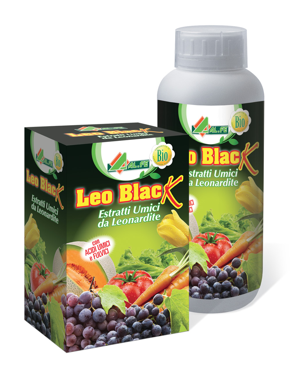 LEO BLACK è un formulato ad alto contenuto di Estratti Umici e Fulvici solubili provenienti da Leonardite e Potassio solubile in acqua.