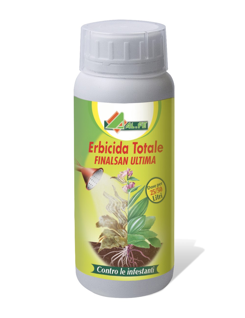 FINALSAN ULTIMA PFnPO è un erbicida fogliare ad attività per contatto non selettivo a base di idrazide maleica e di acido pelargonico. È efficace contro un ampio spettro di erbe infestanti annuali e perenni mono e dicotiledoni quali ad esempio Dente di leone (Taraxacum officinale), plantaggine (Plantago maior), Poa spp., Lamium sp., Stellaria media, stoppione (Cirsium arvense), Polygonum aviculare.