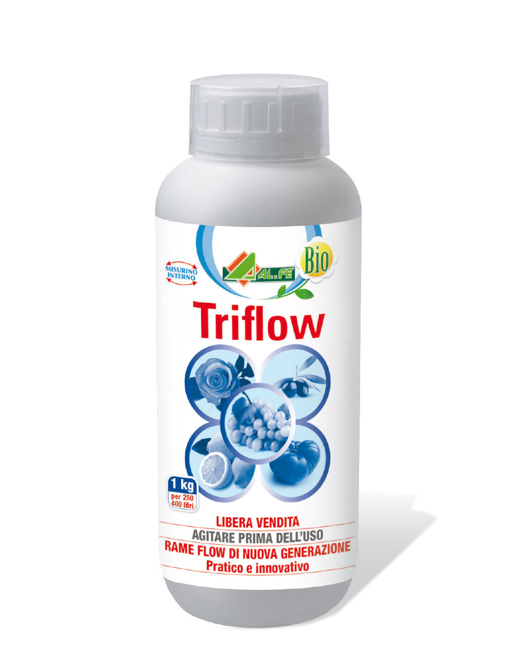 TRIFLOW è un concime fogliare a base di Manganese e Rame Solfato che, grazie alla sua formulazione flowable rende i due microelementi particolarmente assimilabili ed efficaci.