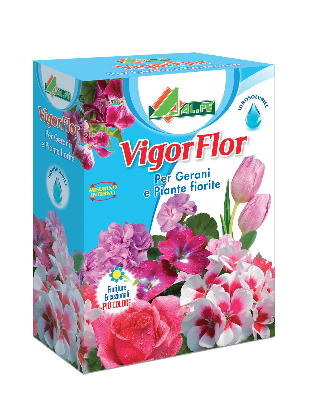 VIGORFLOR IDROSOLUBILE AL.FE è un concime idrosoluble con un elevato tenore di potassio e di azoto prontamente assimilabili ideale per gerani e piante fiorite in genere, in vaso o in piena terra. Le buone ragioni per utilizzare VIGORFLOR: