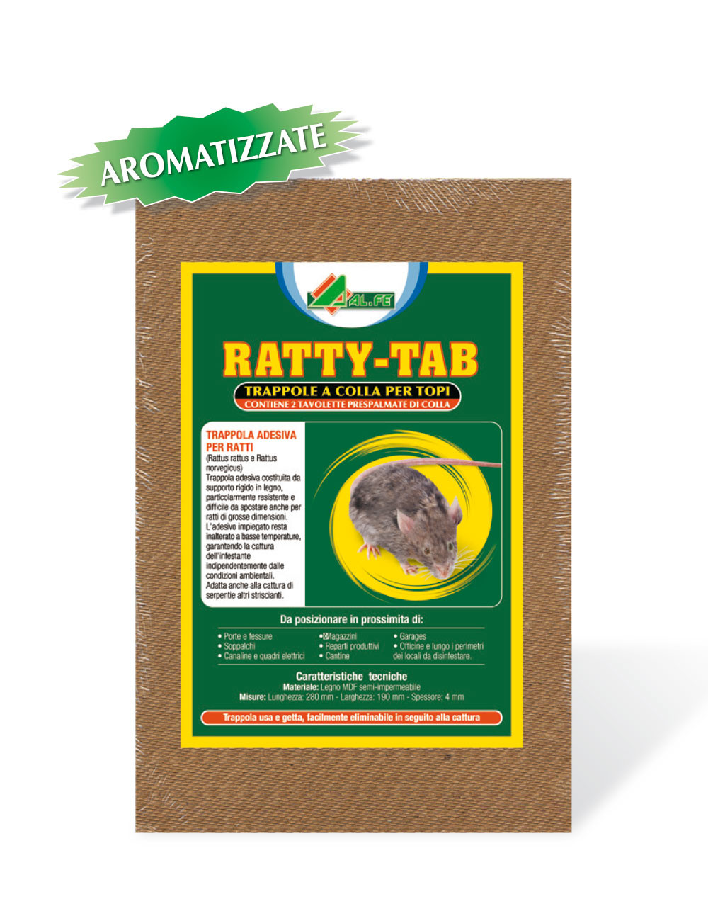Separare le due tavolette pronte all’uso presenti nella confezione e posizionarle nei punti di passaggio dei ratti e dei topi.